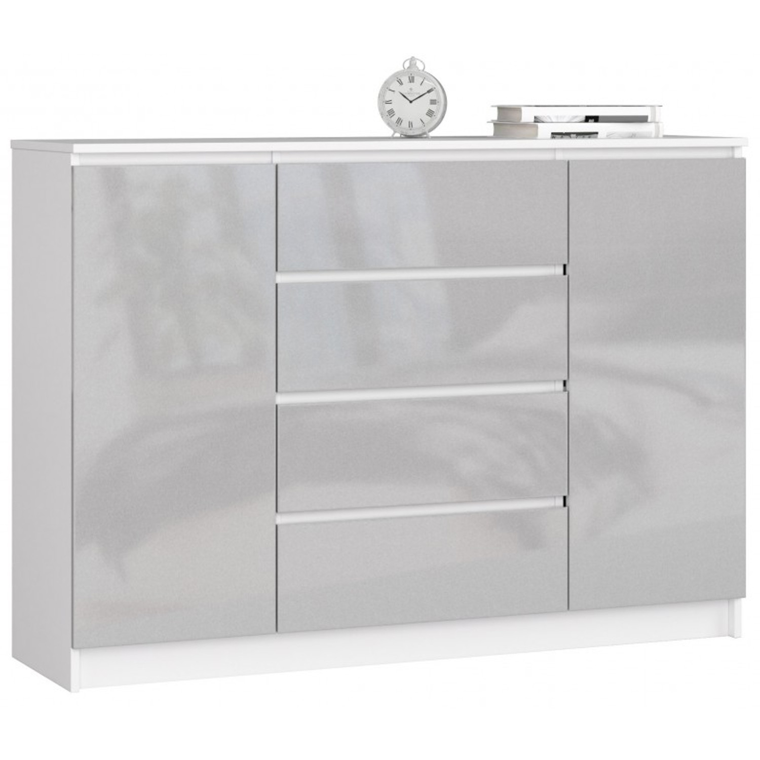 Popis produktu Komoda K140 2D4SZ bílá/metalik lesk